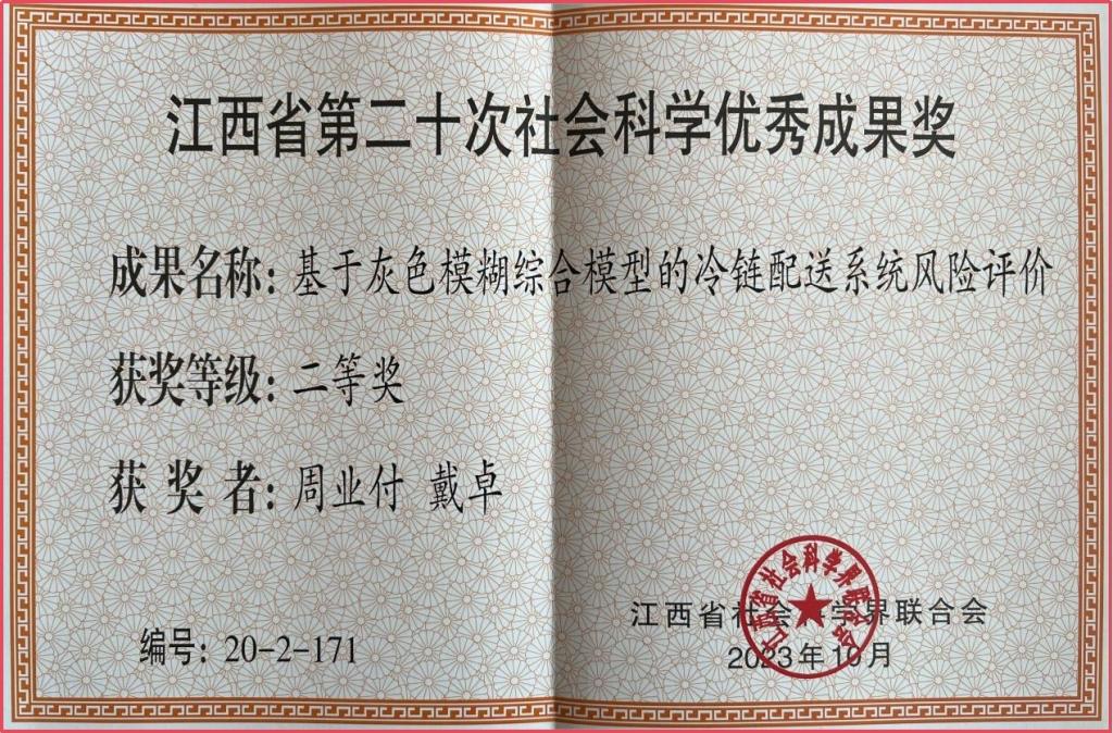 周业付教授2023年获得省级社会科学优秀成果二等奖