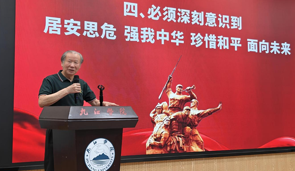 宣讲期间,特邀嘉宾九江市职工文体协会传红分会副会长、红歌手刘少宏向大家讲述抗战名曲《大刀向鬼子们的头上砍去!》的创作背景,他的激情演唱充分展现了革命战士豪气冲天的战斗意志,铿锵的旋律点燃了在场师生们的爱国热情。