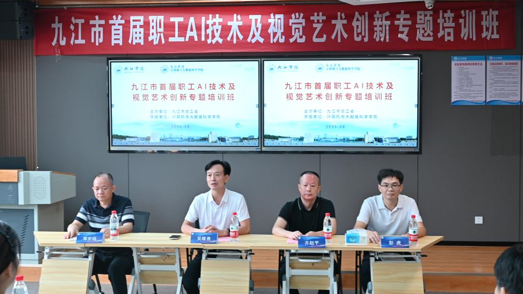 9月23日,由九江市总工会主办、九江学院计算机与大数据科学学院承办的九江市首届职工AI技术及视觉艺术创新专题培训班在我校开班。副校长吴维勇,市总工会党组成员、经费审查委员会主任齐赵平及我校计算机与大数据科学学院负责人出席开班仪式。