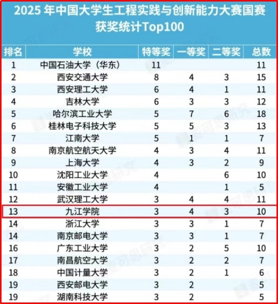 近日,2025年中国大学生工程实践与创新能力大赛总决赛获奖名单公布,我校学子获全国特等奖3项、一等奖4项、二等奖3项,经组委会统计排名,在众多实力雄厚的双一流高校中,我校作为应用型本科高校独树一帜,勇攀高峰,位列全国第13名,闯入国家队第一方阵。