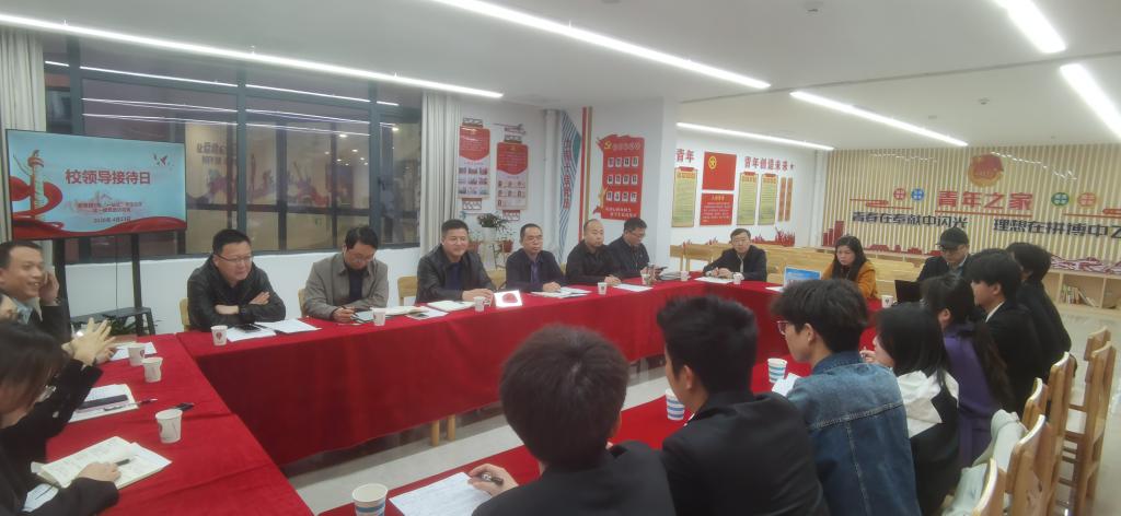 4月23日,“润心赋能青春绽放”主题校领导接待日活动在紫薇园5 栋“一站式”学生社区举行。校党委委员、副校长雷志强出席活动,党政办、教务处、学工处、资产处、基建处、后勤处、保卫处、图书馆等相关职能部门负责同志参加活动,与会领导和学生代表面对面深入交流,共解成长困惑,共话成长成才。